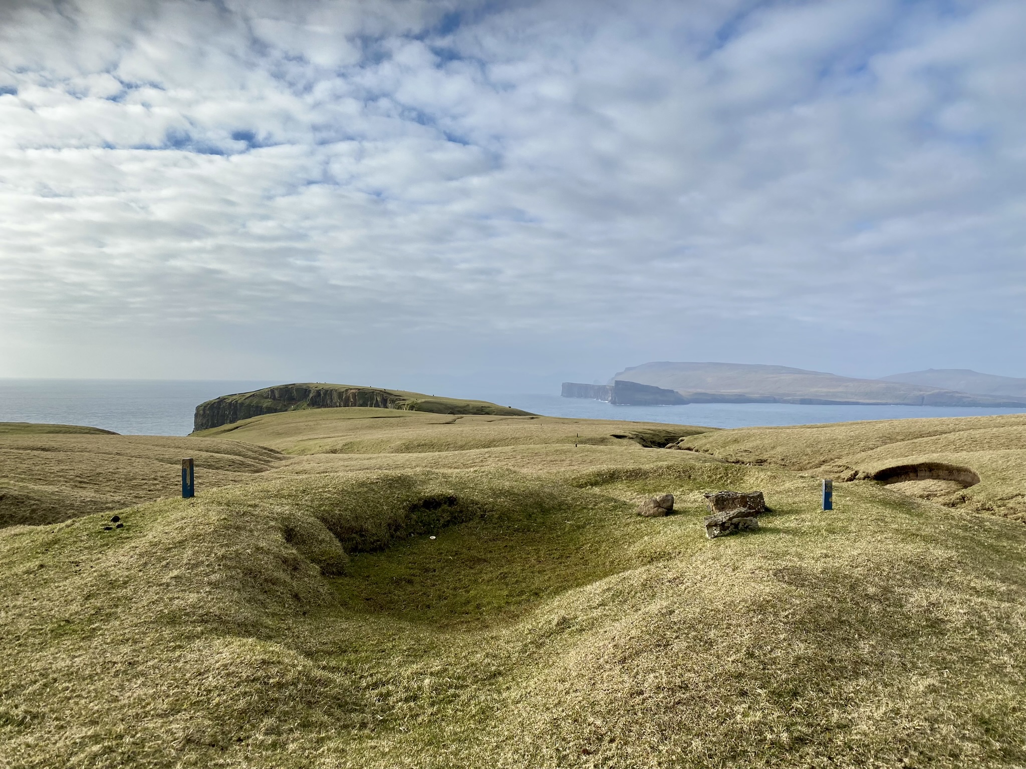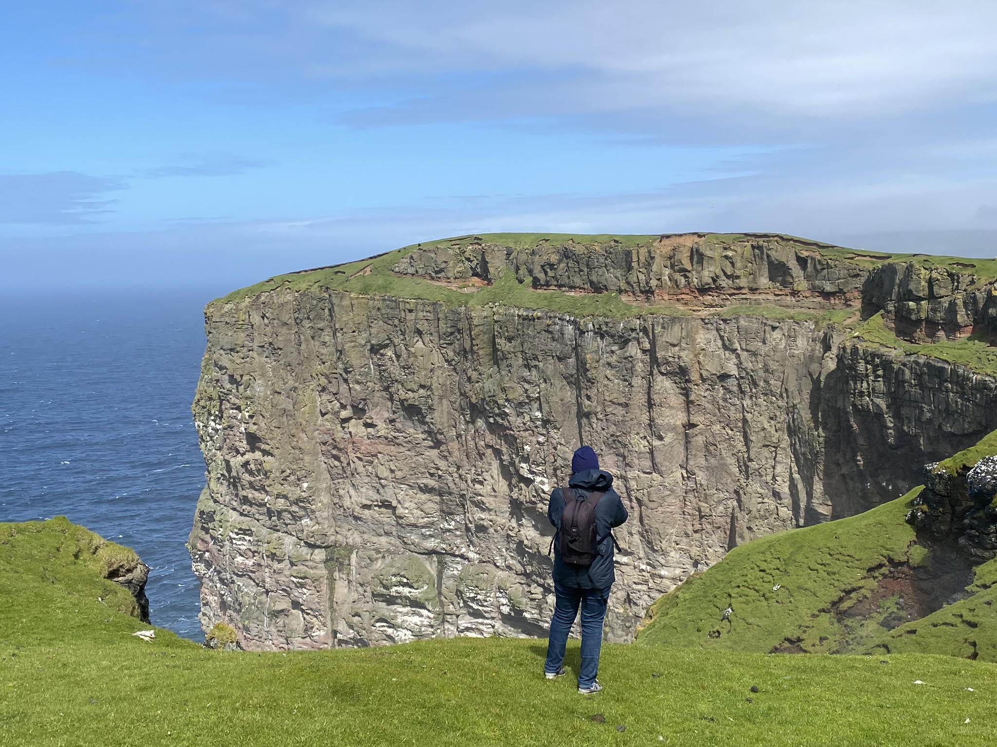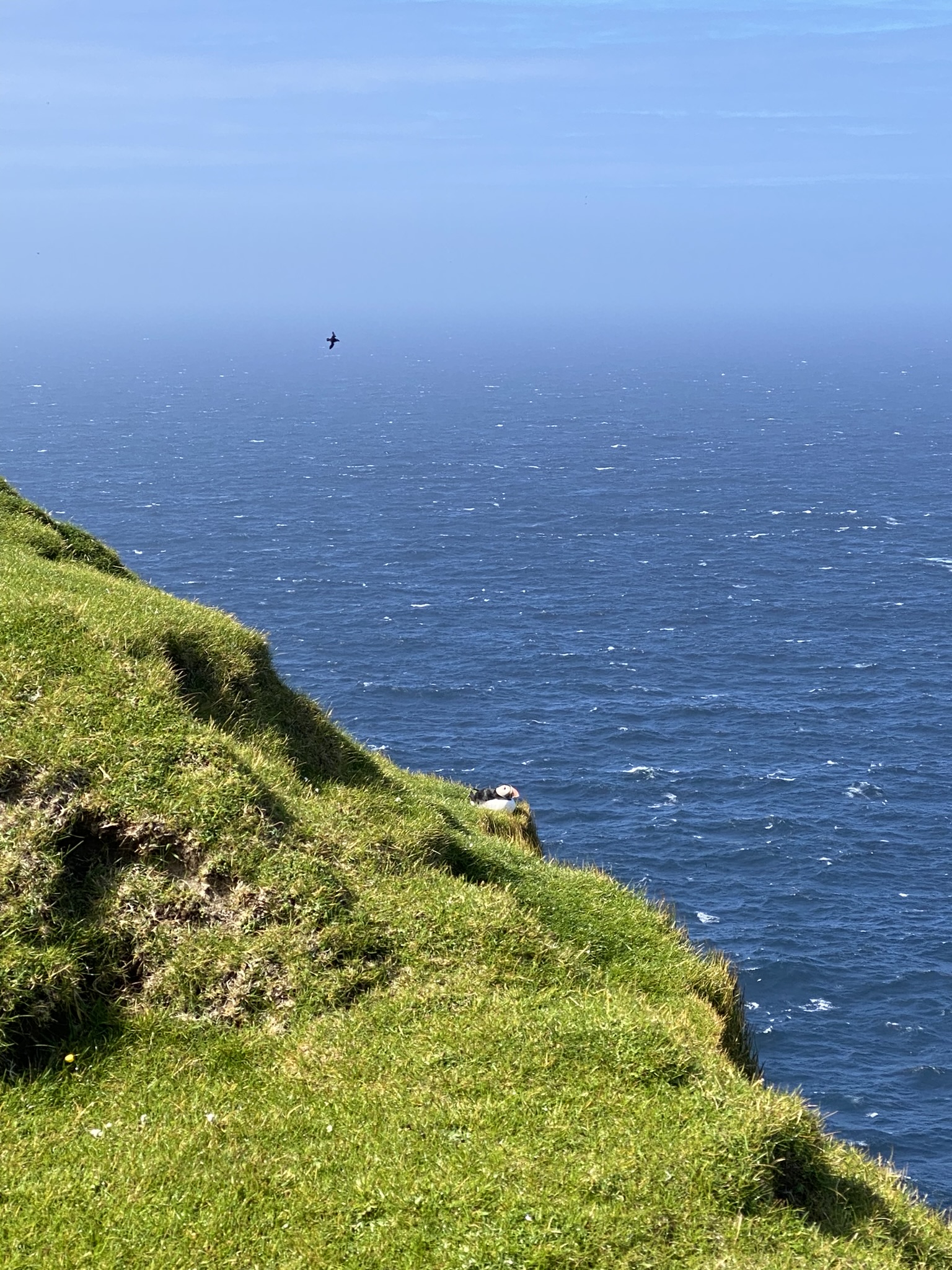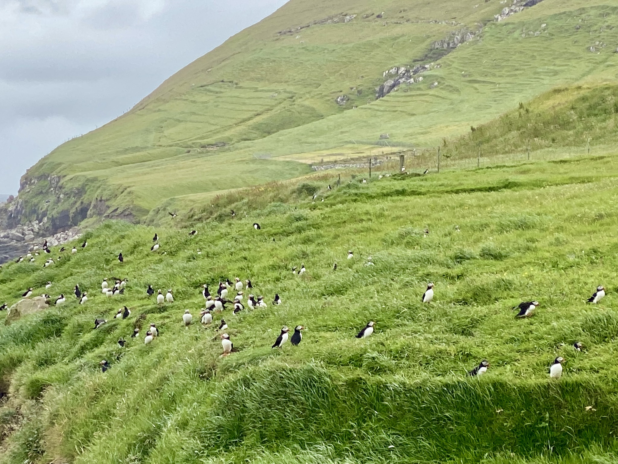 Skúvoy is a Ramsar site due to the biggest guillemot colony in the Faroe Islands, but the island also has many puffins and they are right by the village and ferry port.