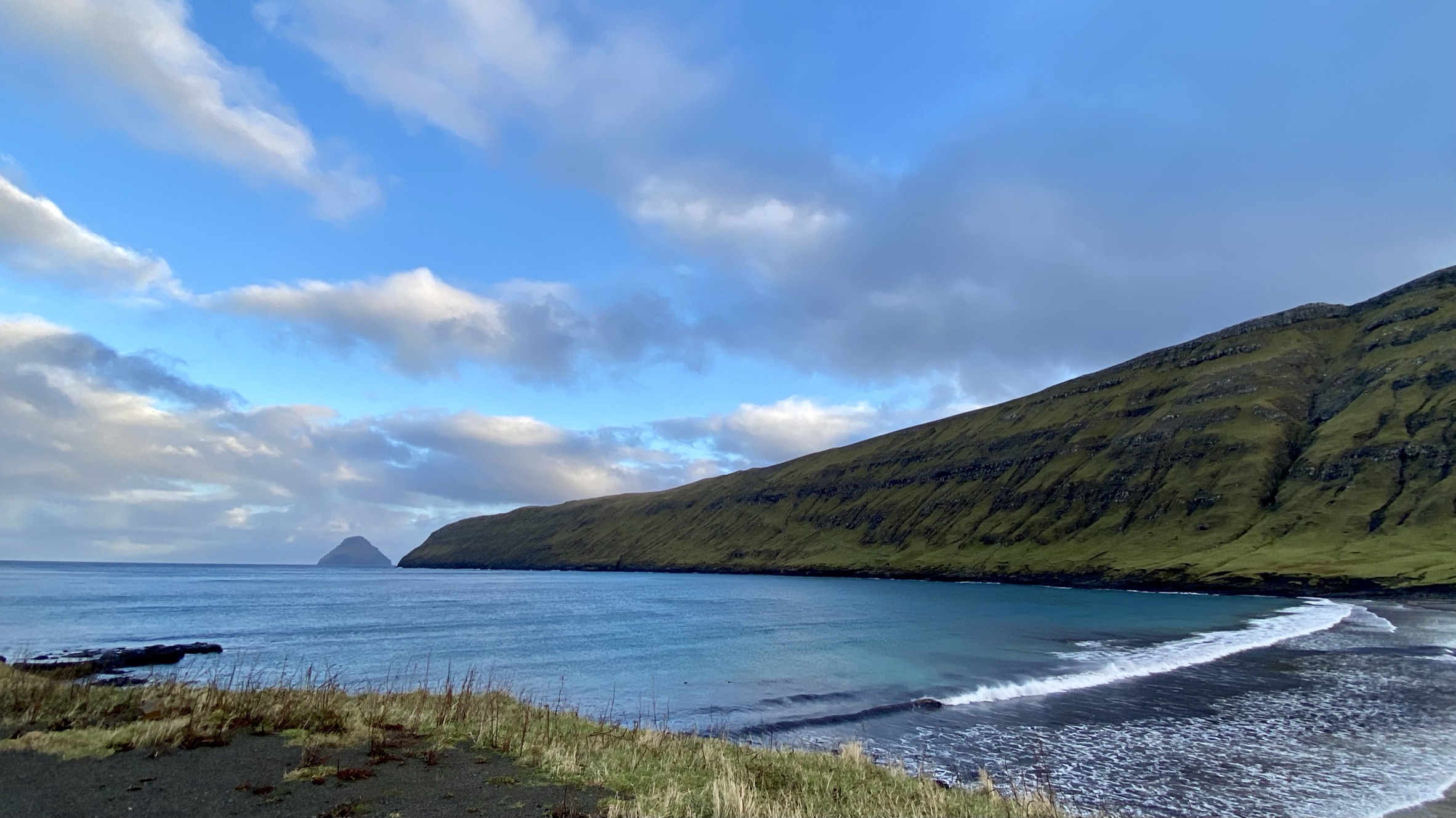 We arrive on Suðuroy before noon and start the day with a beautiful hike to Hvannhagi an easy 3 hours hike. After the hike we have lunch in Glasstovan in Tvøroyri. From there we drive south and see Vágseiði and Eggjarnar and then we take the old mountain road to the southernmost village of the Faroe Islands Sumba. We make a photostop on the way and see Beinisvørð up close.